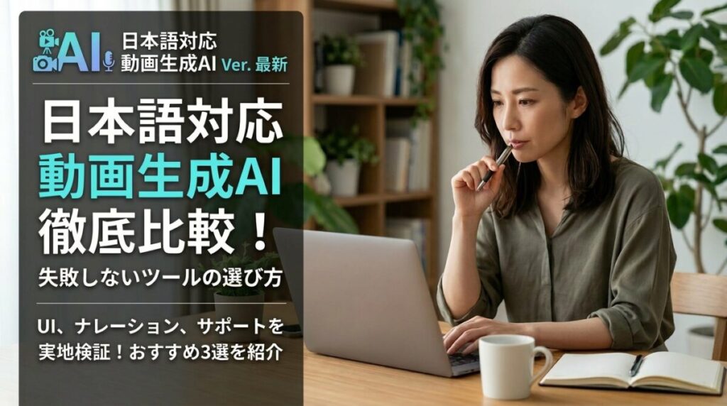 この記事では、日本語対応に優れた動画生成AIツールを比較し、どのツールがどんな人に向いているかを整理しています。UI、ナレーション、サポート体制の違いが一目で分かるので、安心して選べるはずです。